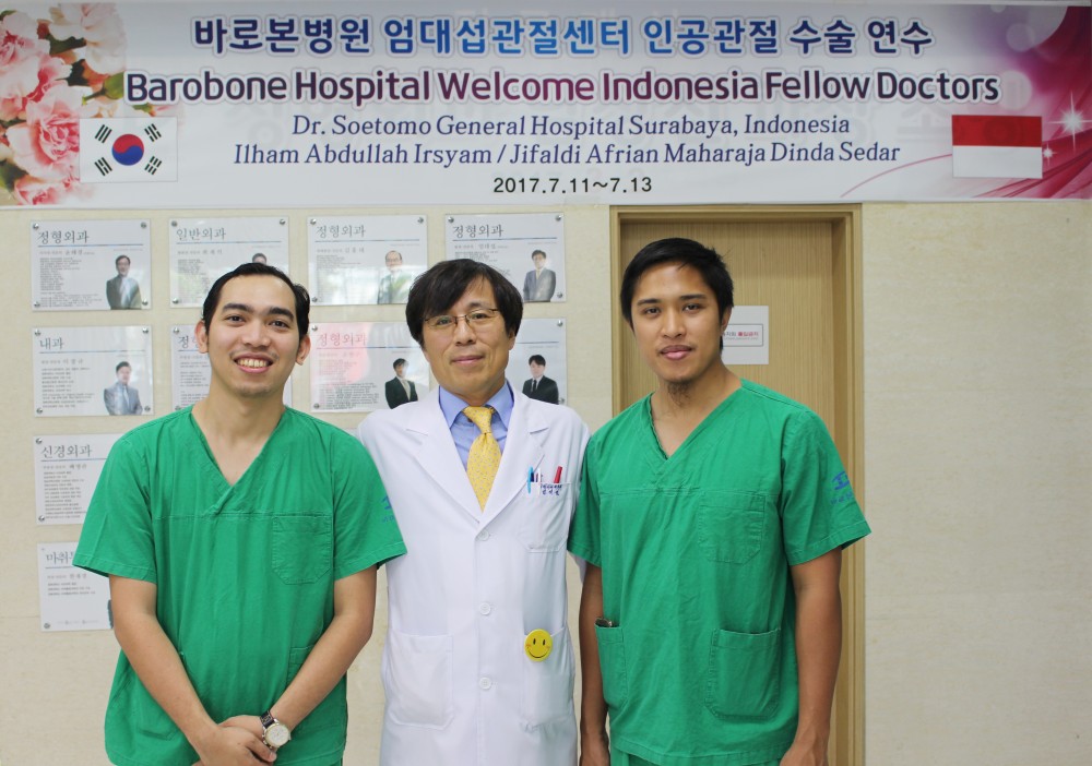 바로본병원 엄대섭관절센터에 인도네시아 수라바야 소에토모 대학병원 정형외과 의사 두 명이 찾아왔습니다.