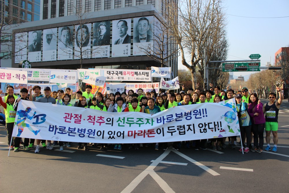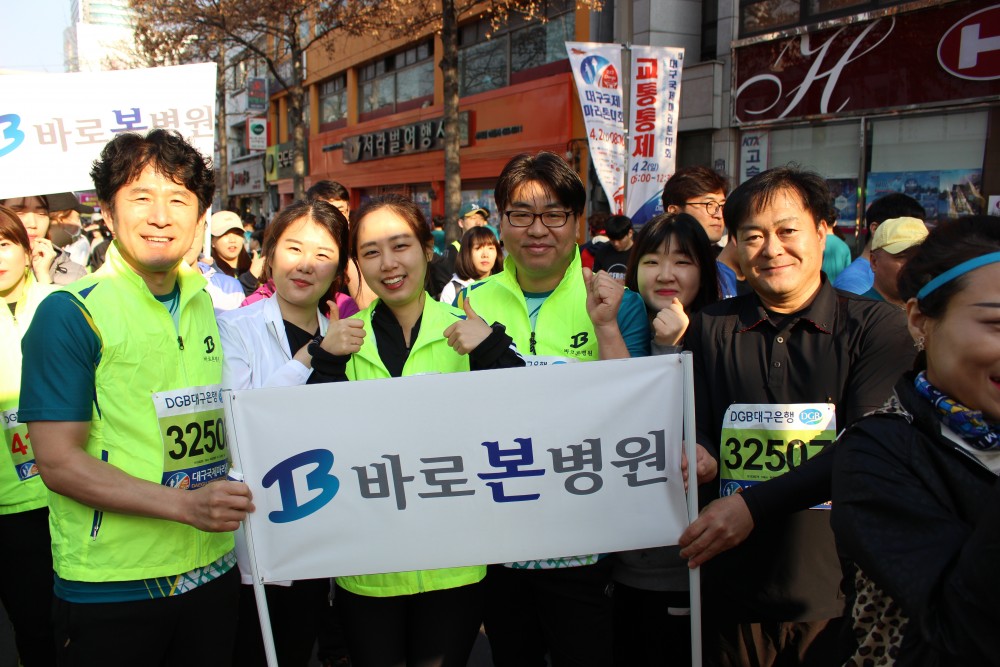 4월 2일 바로본병원 의료진 및 임직원 일동 (윤태경 이사장 이하 77명)은 대구에서 열린 2017대구국제마라톤에 참가하였습니다.이 날 임직원들은 전원 10Km 마라톤에 참가하였으며, 완주하는 쾌거를 이루었습니다.