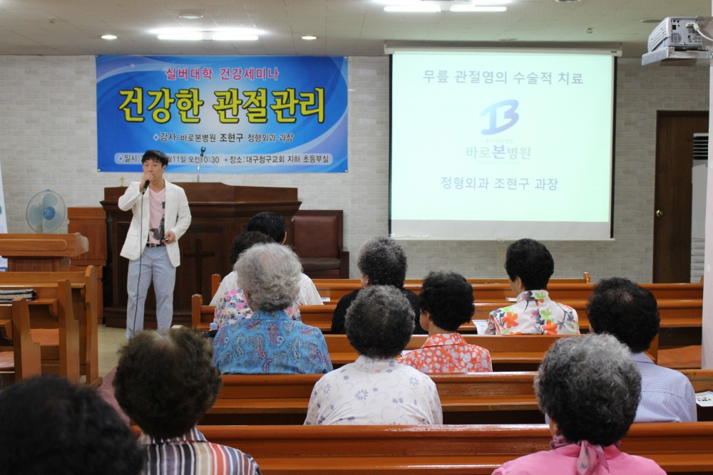 청구교회 실버대학 대상으로 정형외과 조현구과장님께서 『무릎관절에 대한 수술적치료』에 관하여 아주 쉽고 유익하게 강의를 해주셨습니다.
