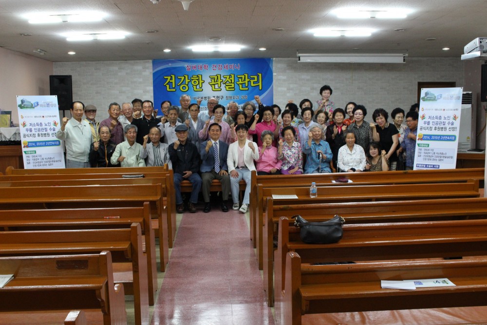 또한 바로본병원은 보건복지부, 대한노인회, 노인의료나눔재단이 주관하는 "2015년 저소득층 노인 인공관절 수술비 지원사업"저희 바로본병원이 2014년에 이어 2015년에도 대구경북지역 유일하게 2년 연속 후원병원으로 선정된 내용도 홍보하여  참석하신분들의 관심이 많으셨습니다.