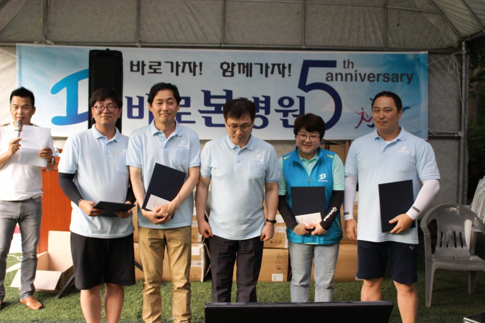 바로팀과 본팀으로 나누어 체육대회를 즐겼고, 3주년 근속사원과 병원발전에 큰 기여를 한 우수사원, 최우수사원에게 상장과 포상을 하였습니다.