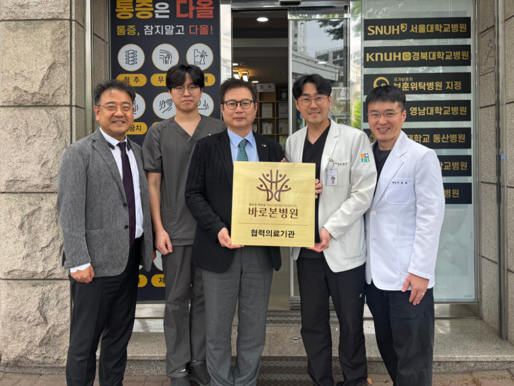 2025년 4월 중 다올연합의원과 수성나무재활의학과 이 두곳에 바로본병원 최재석 병원장과 정영수 진료과장이 방문하여 협력의료기관으로써의 인증현판을 전달하였습니다.