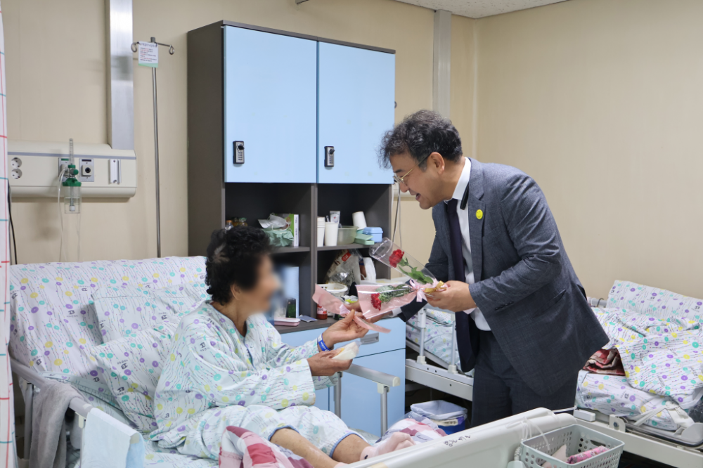 2025년 5월 8일 병동 환자분들에게 어버이날을 기념하여 카네이션 꽃 및 떡을 전달하며 빠른 쾌유를 기원하였습니다.