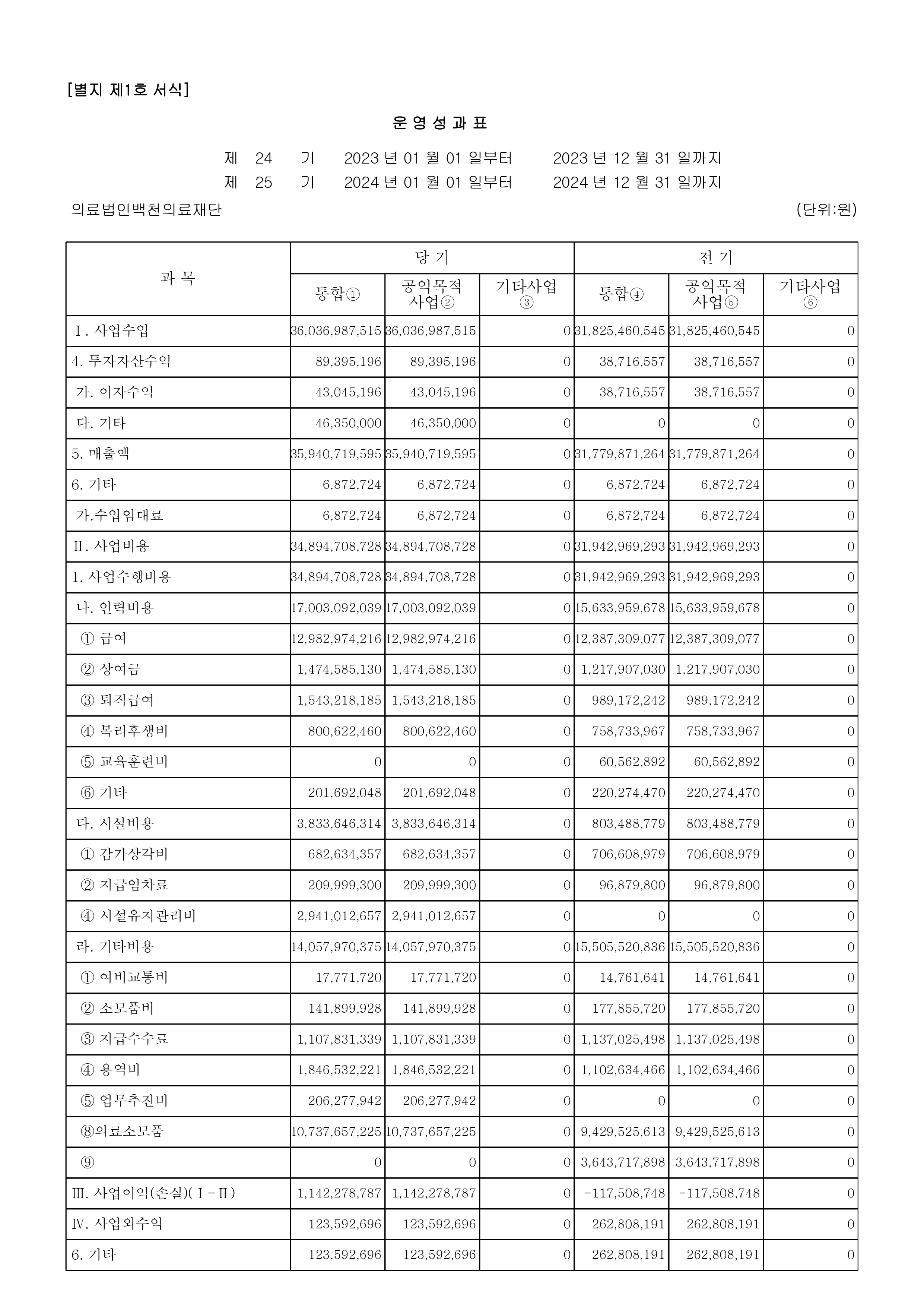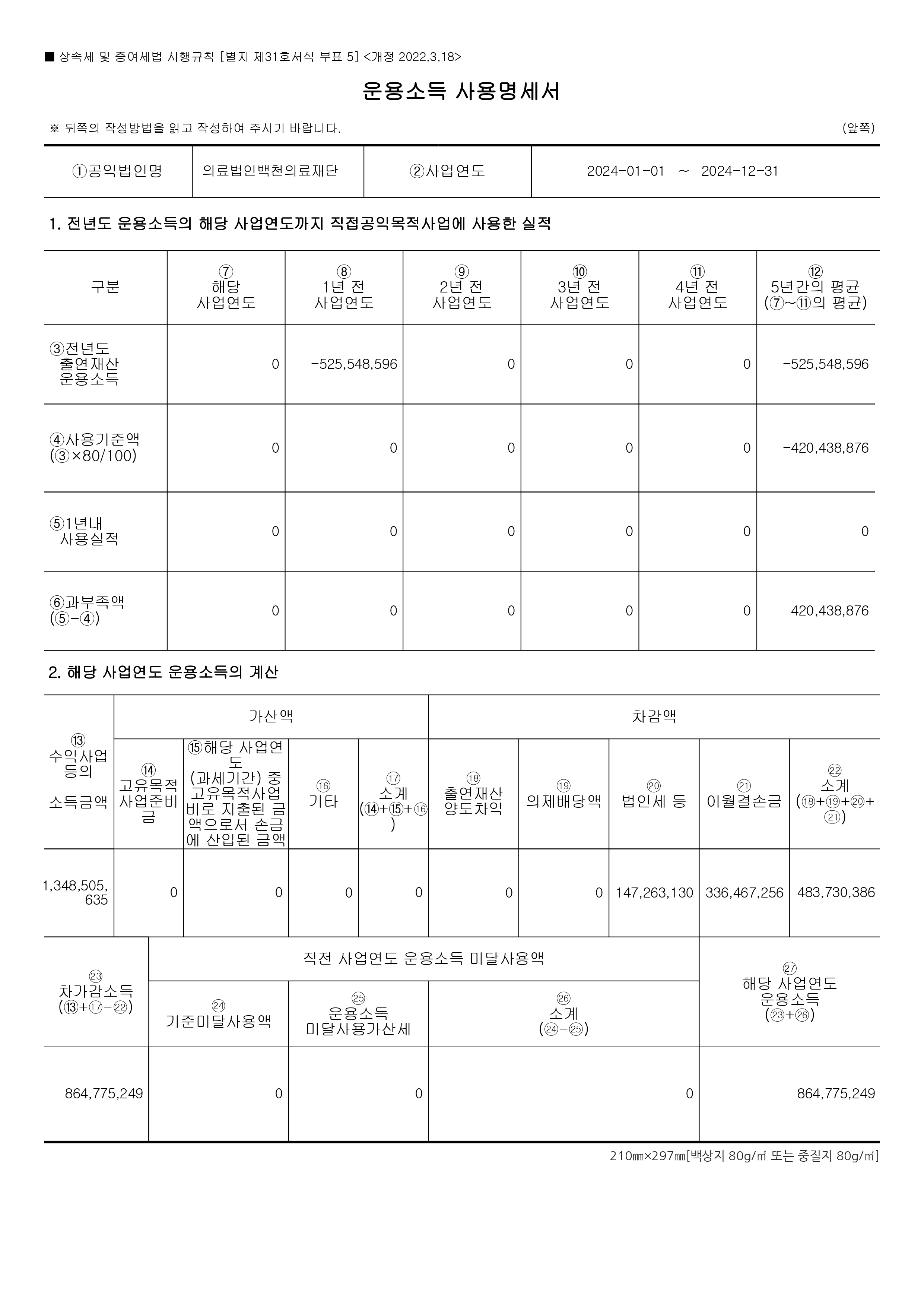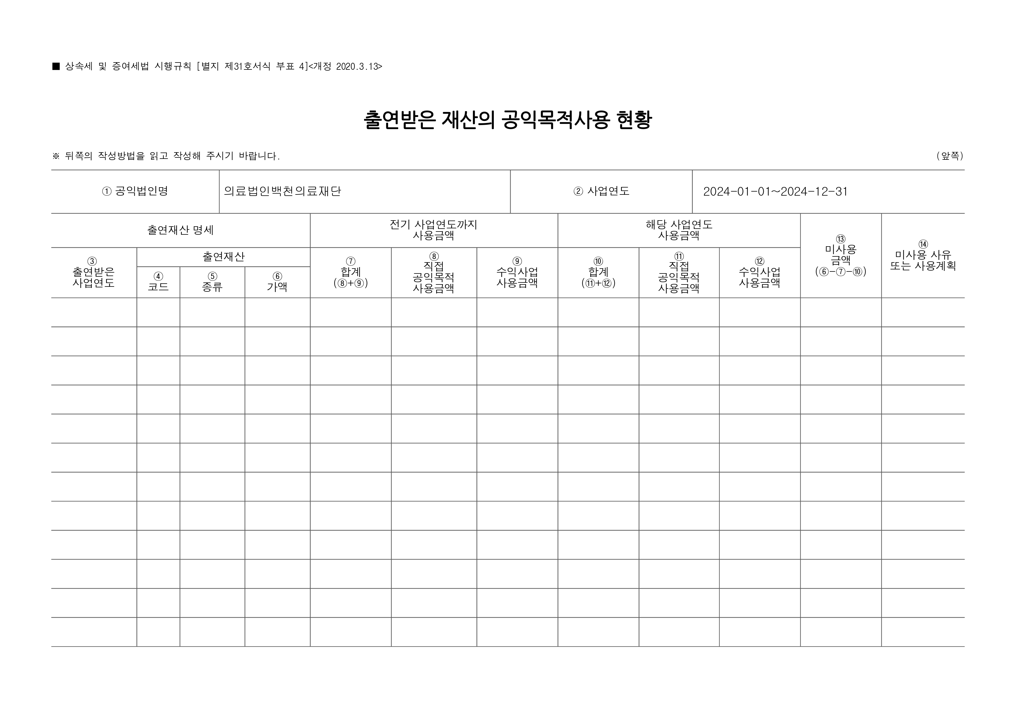 2024년도 공익법인 결산 (2024.01.01 ~ 12.31 귀속)