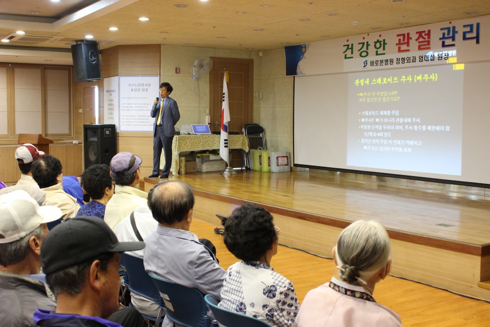 2017년 5월 16일 서구에 위치한 대구광역시 서구 노인복지관에서 "건강한 관절 관리"에 관하여 아주 쉽고 유익하게 강의를 해주셨습니다.