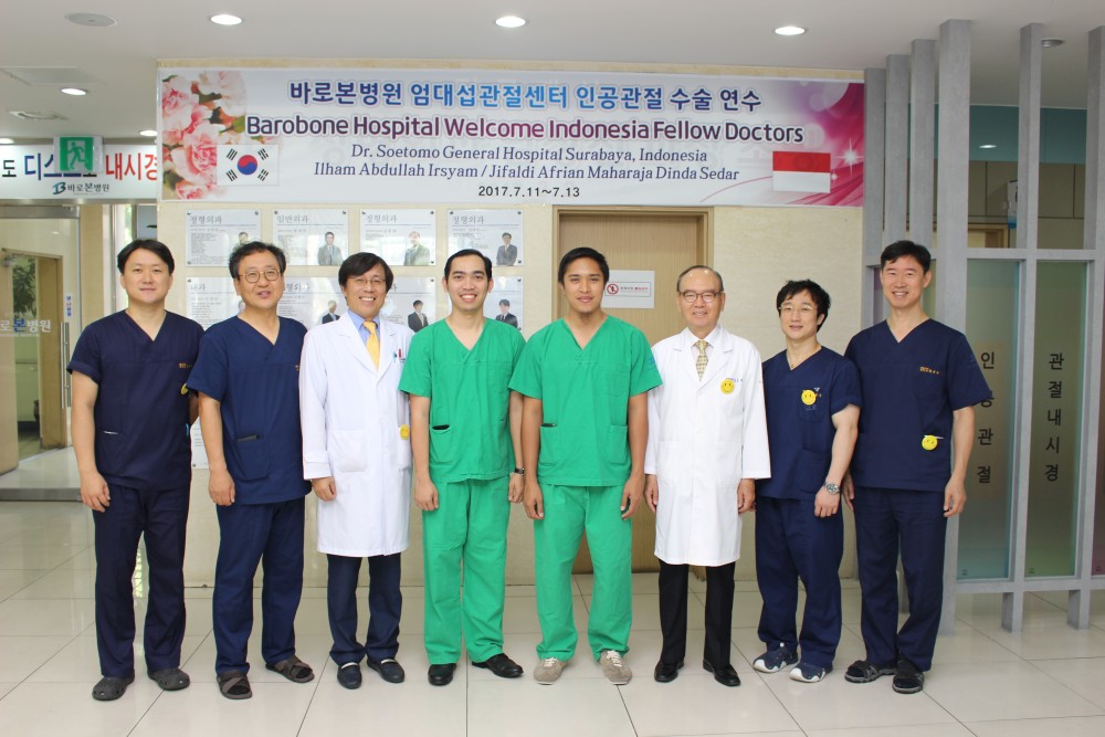 바로본병원 엄대섭관절센터에 인도네시아 수라바야 소에토모 대학병원 정형외과 의사 두 명이 찾아왔습니다.