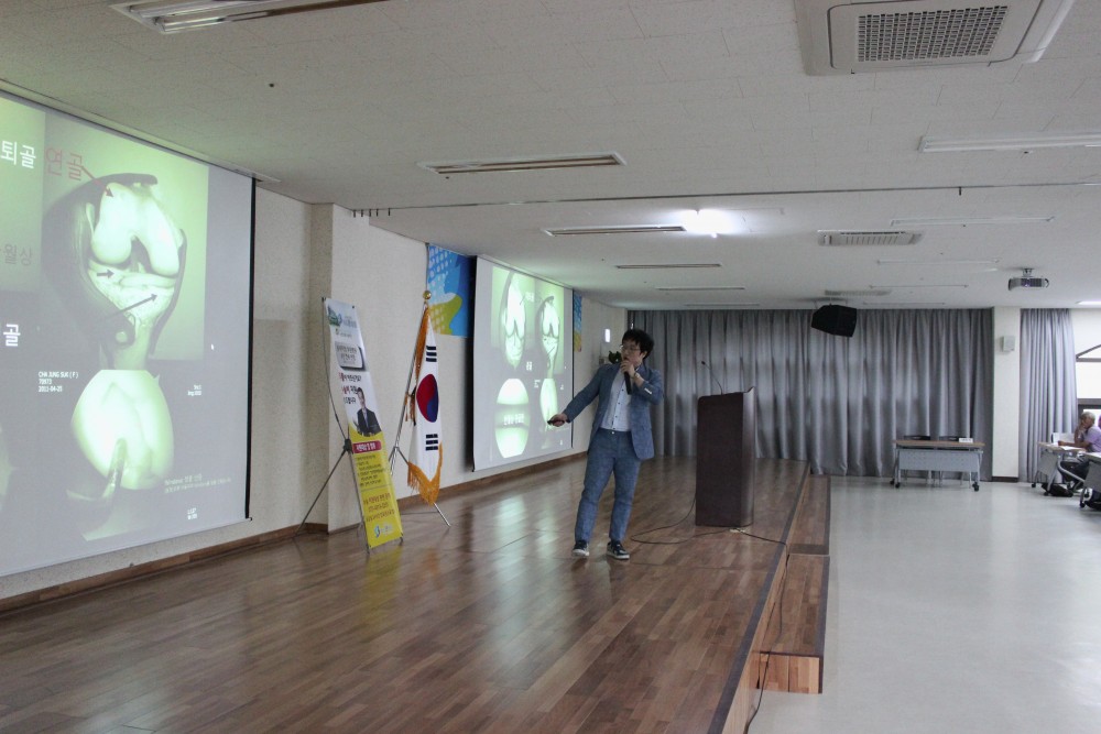 2017년 7월 12일 전라북도 무주군에 위치한 무주리조트 노인연수원에서 조현구과장, 남상진과장의 건강강의, 건강예방에 관하여 아주 쉽고 유익하게 강의를 해주셨습니다.