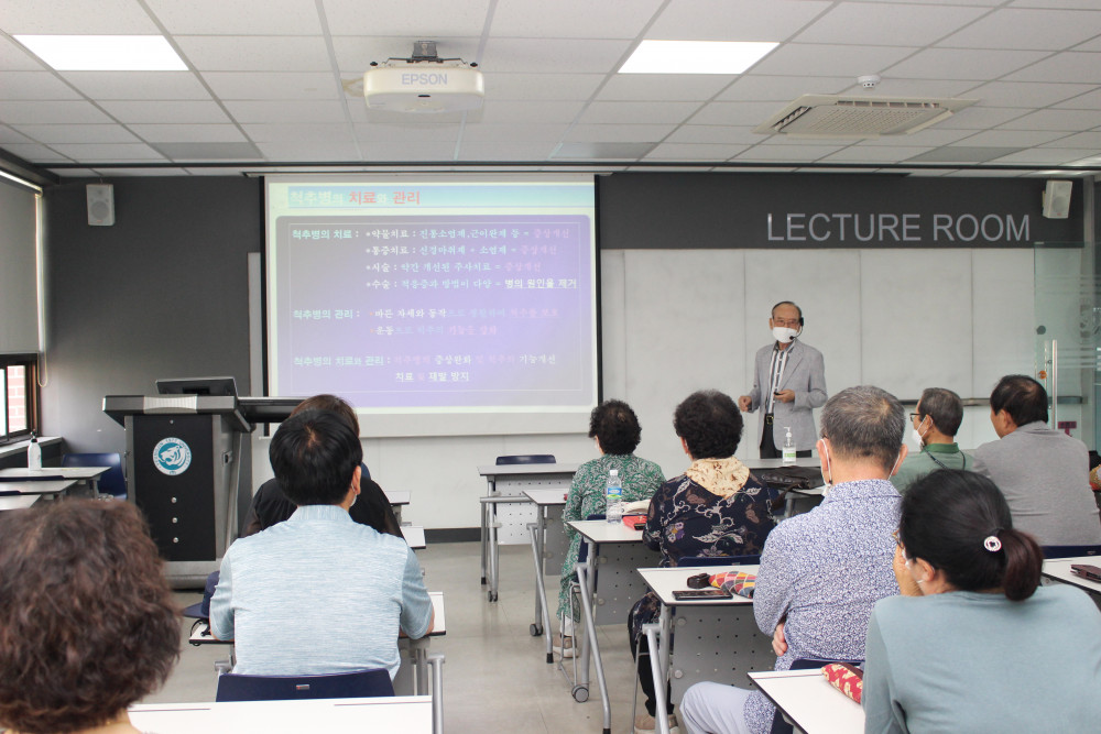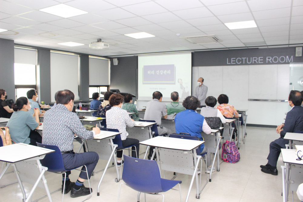 노인학생을 대상으로 "허리건강관리"라는 주제로 건강 강연을 실시하였습니다.