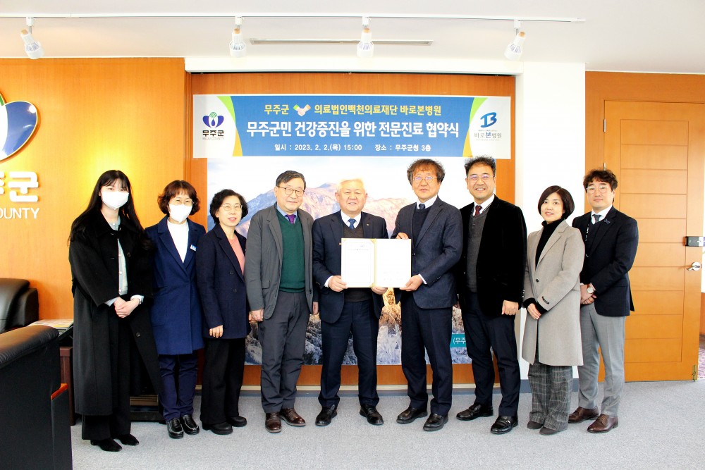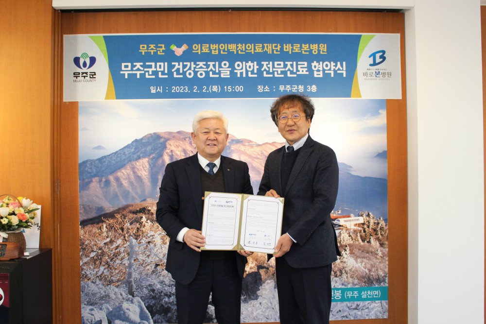 2023년 2월 2일 전라북도 무주군청에서 무주군과 바로본병원은 업무협약을 하였습니다.
