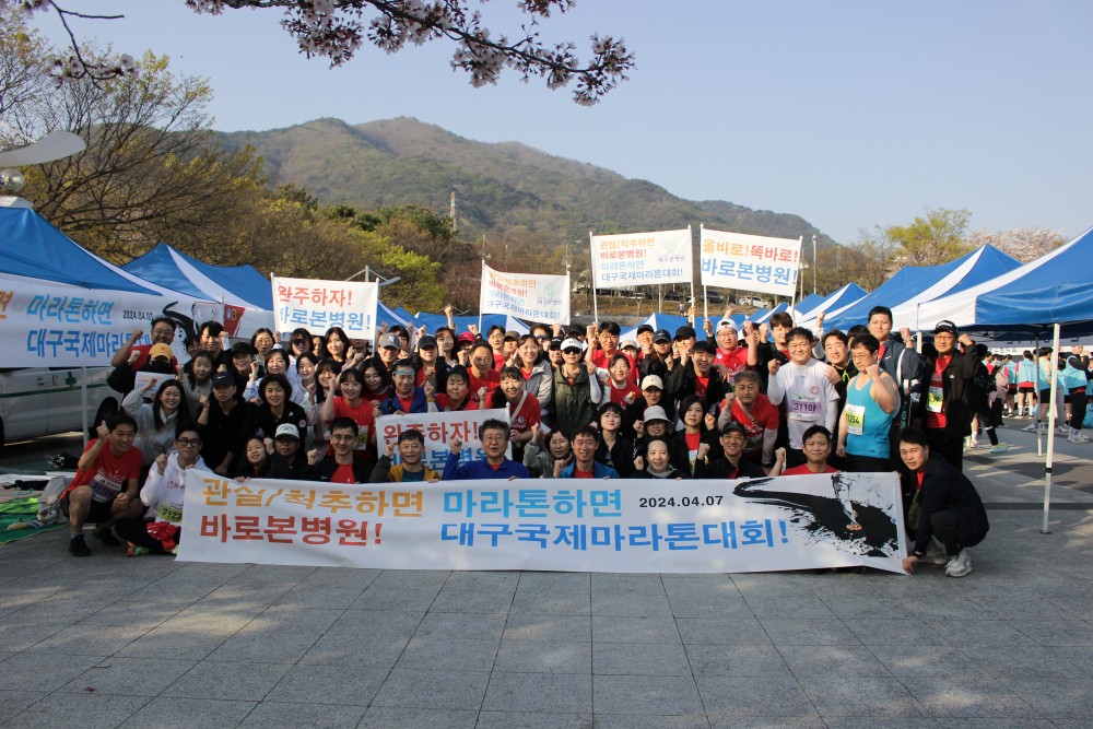 2024년 4월 7일 바로본병원 의료진 및 임직원 일동(윤태경 이사장 이하 100명)은 대구월드컵경기장 일대에서 열린 2024대구국제마라톤에 참가하였습니다.