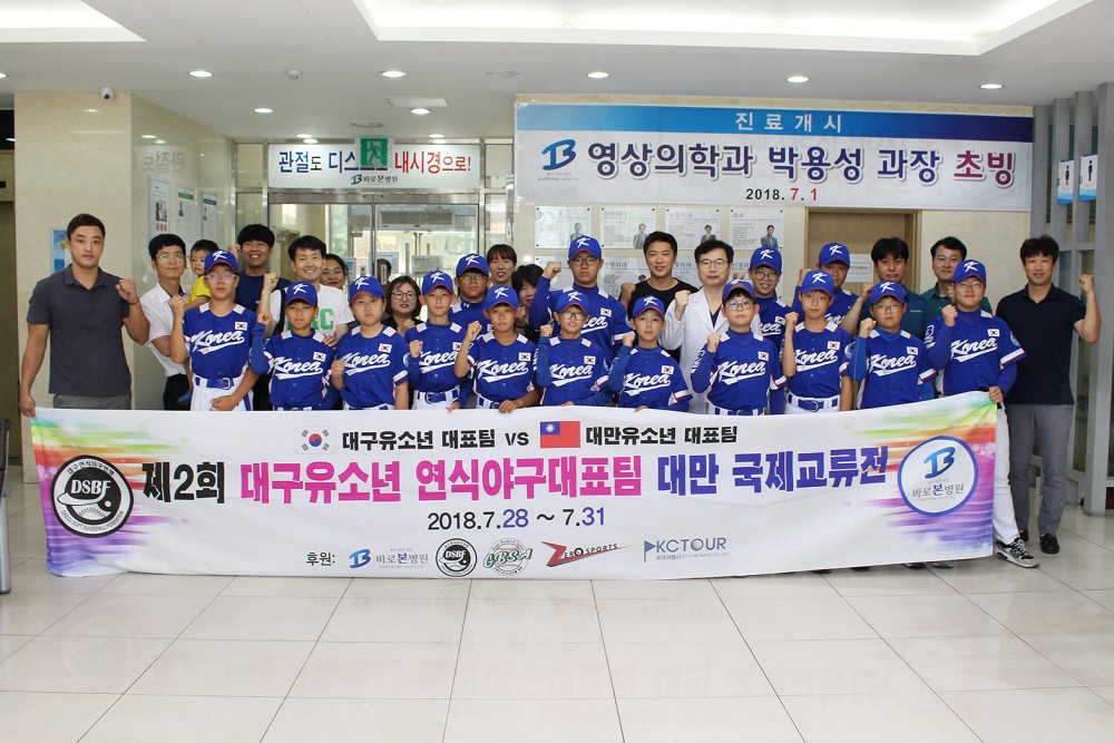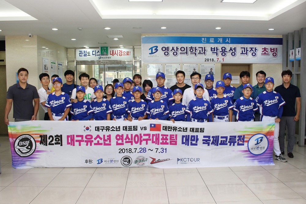 오는 28일부터 31일까지 대만 가오슝에서 개최되는 대만 국제 교류전에 참가하는 대구 유소년 연식 야구대표팀(회장 윤태경 바로본병원이사장)이 본원에서 출정식을 가졌습니다.