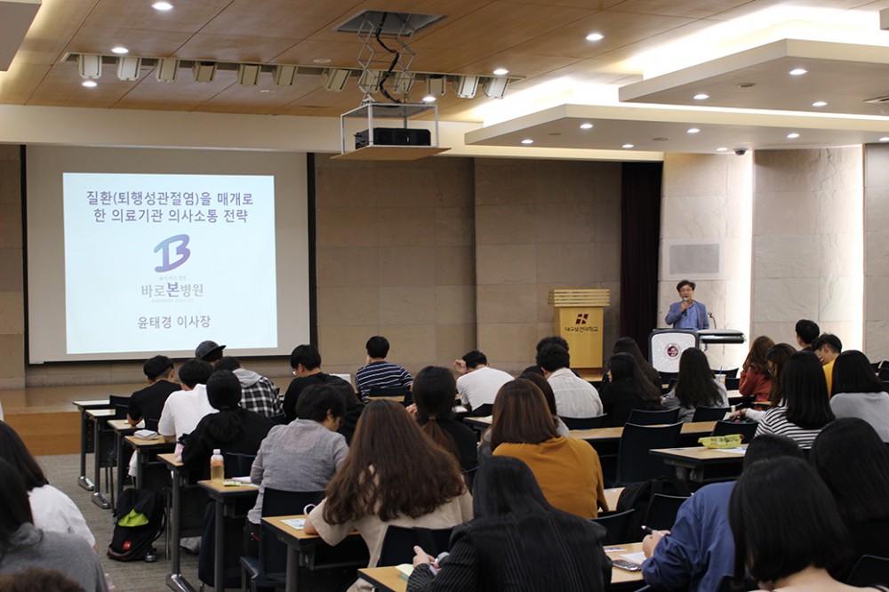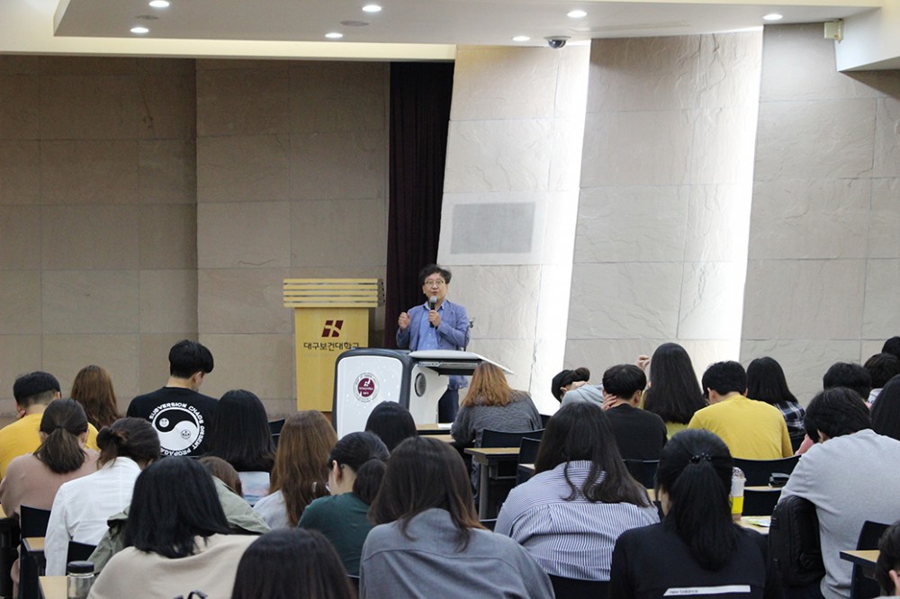 2019년 9월 20일 대구보건대학교 1학년 150여명의 재학생들을 상대로 본원 윤태경 이사장님께서 직접 강의를 하셨습니다.