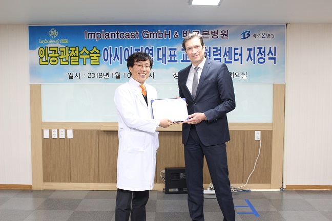 내용 : Implantcast GmbH 에서 저희 바로본병원을 인공관절 수술 아시아지역 대표 교육협력센터로