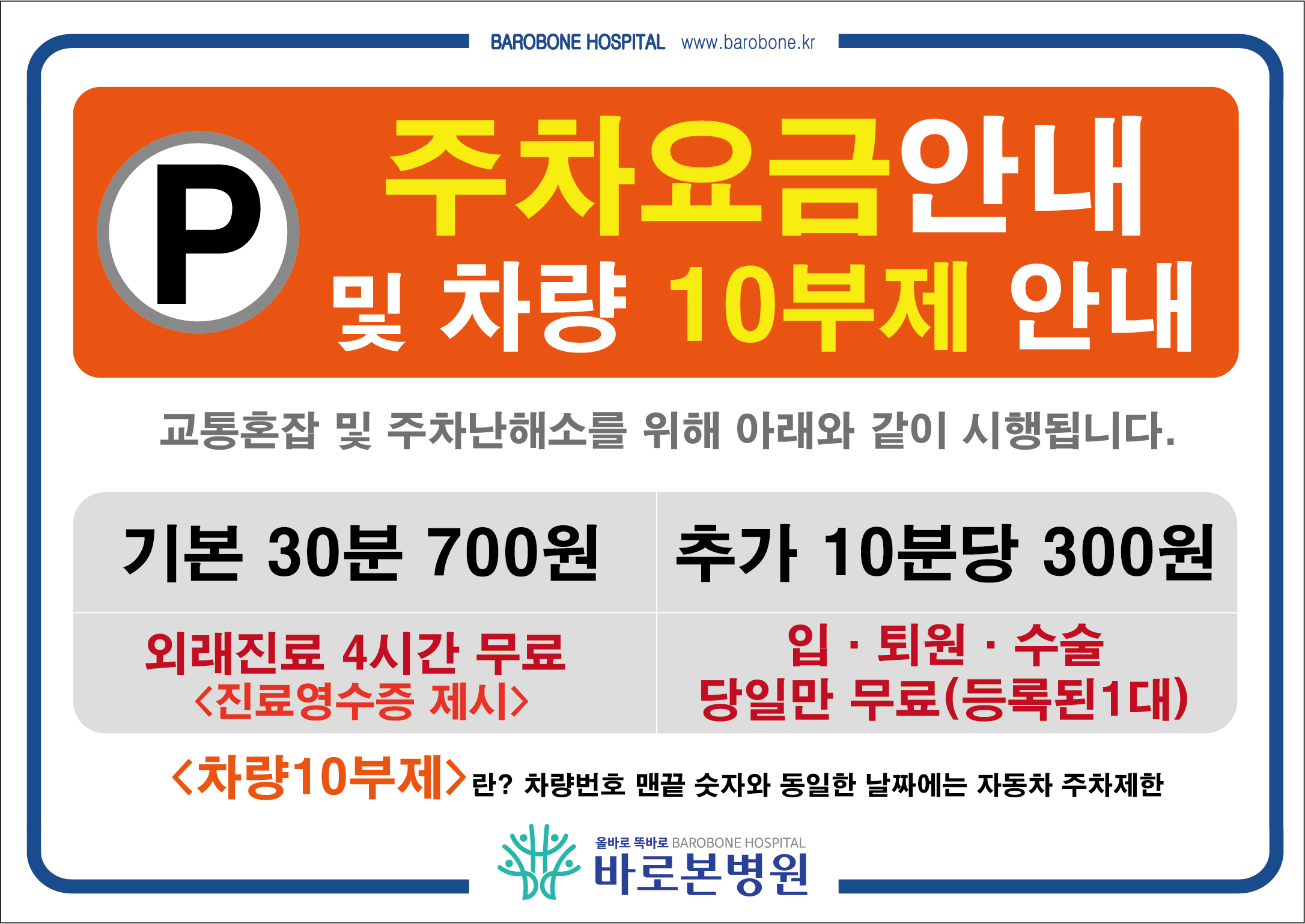 • 3. 입원, 퇴원, 수술환자(보호자)는 주차도장을 원무과에서 받으시기 바랍니다.