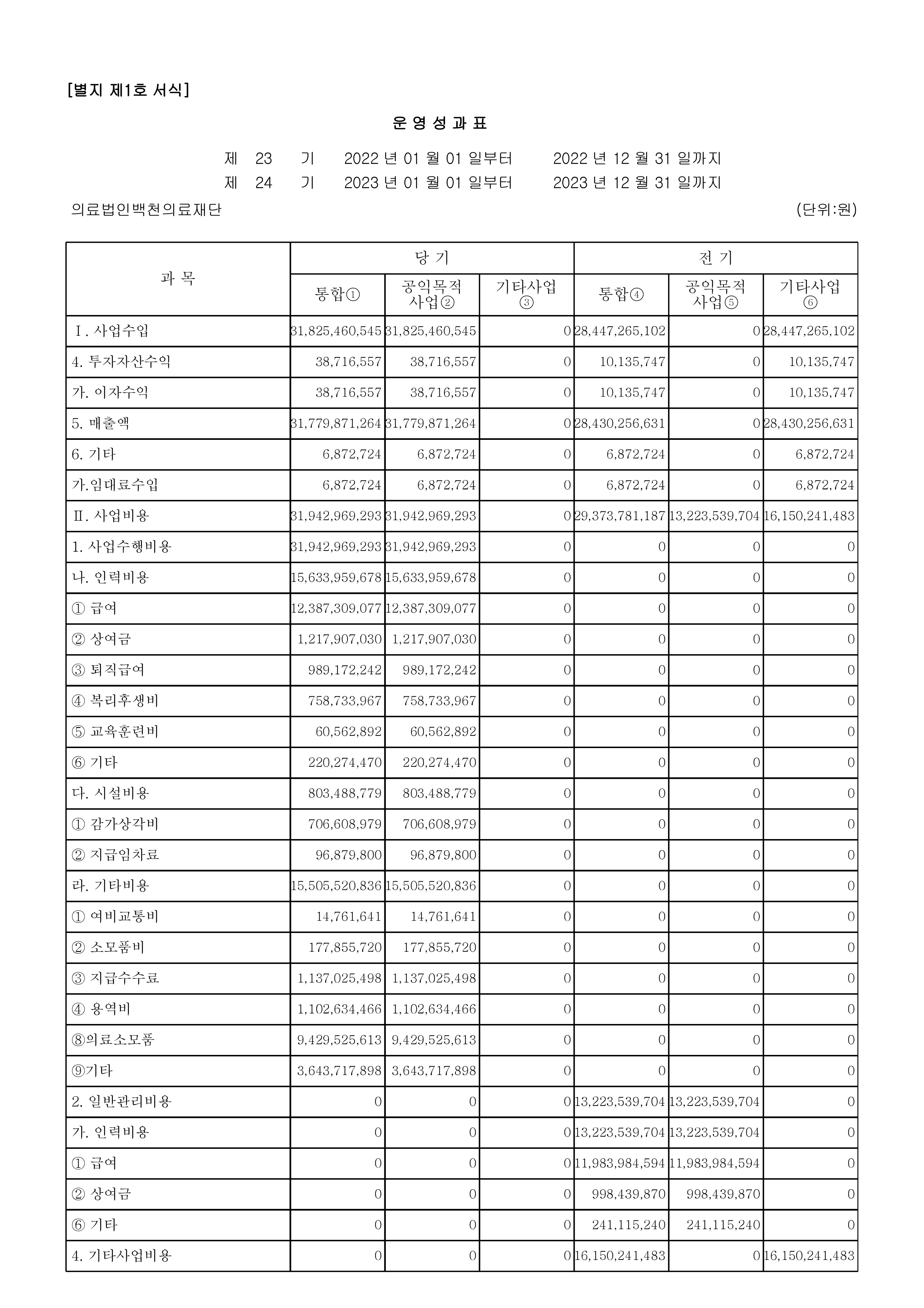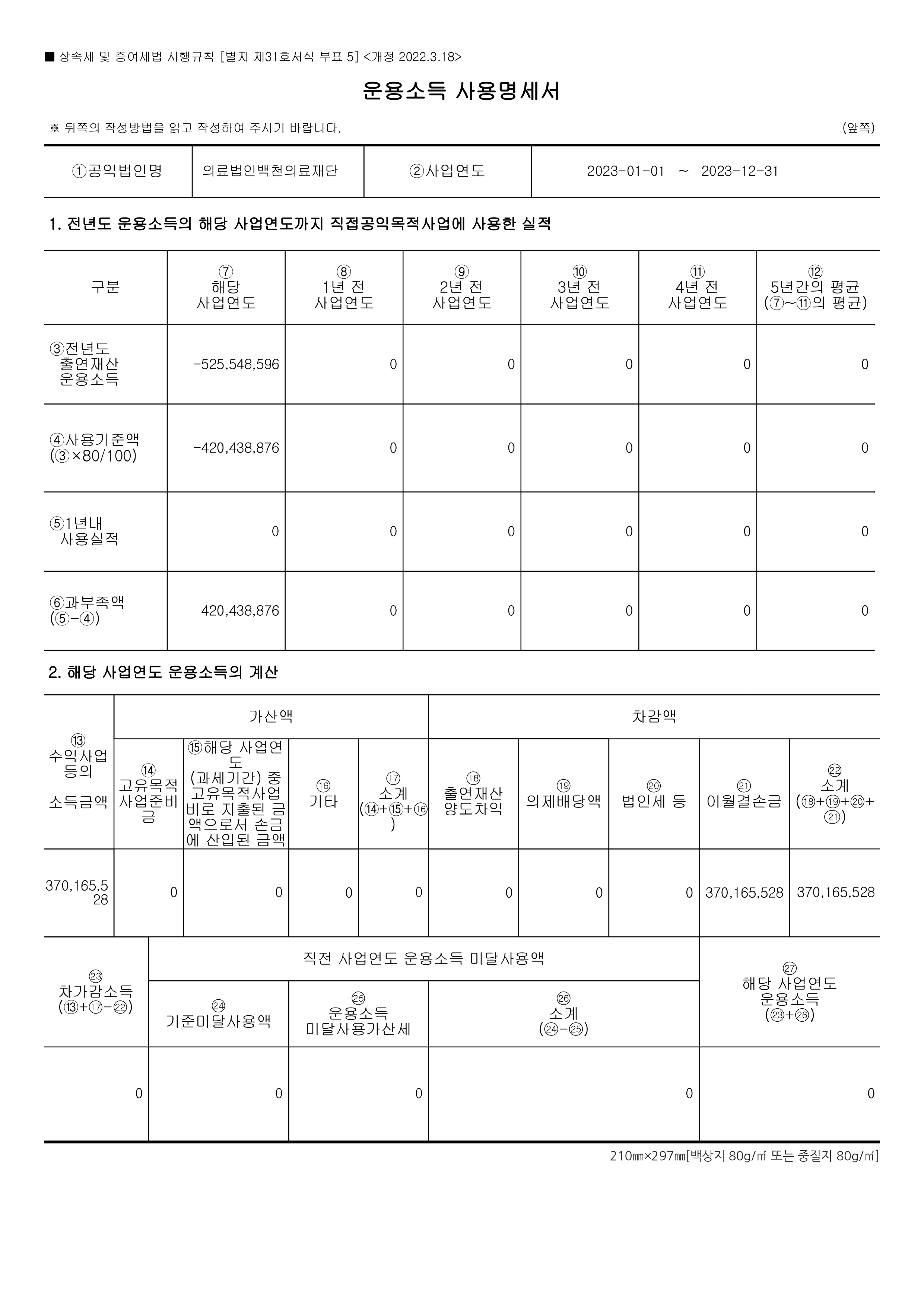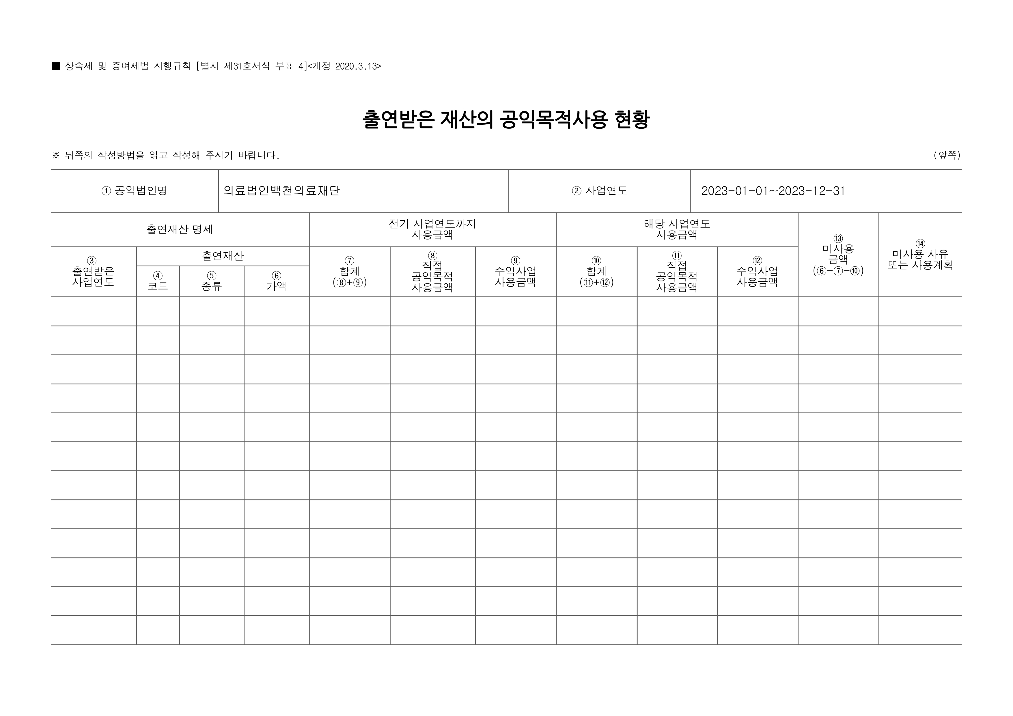 2023년도 공익법인 결산 (2023.01.01 ~ 12.31 귀속)